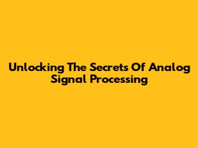 Unlocking The Secrets Of Analog Signal Processing