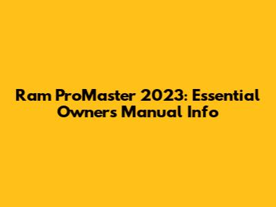 Ram ProMaster 2023: Essential Owner's Manual Info