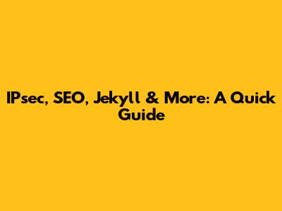 IPsec, SEO, Jekyll & More: A Quick Guide