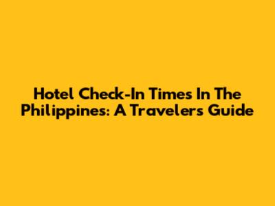 Hotel Check-In Times In The Philippines: A Traveler's Guide